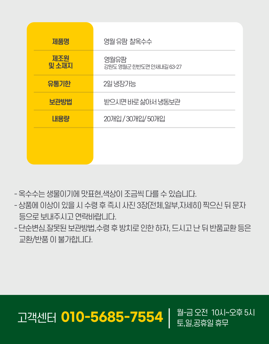[주문하시는 찰옥수수는 기성제품이 아니어서 신선도와 맛을 유지하기 위하여